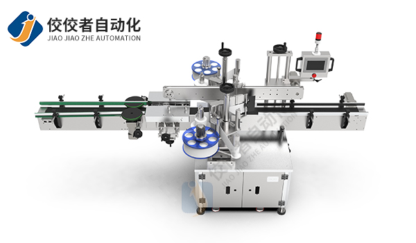 全自动双侧面贴标机推荐理由:适用于扁瓶、圆瓶、方瓶的单面和双侧面贴标,如洗发水扁瓶,润滑油扁瓶,洗手液圆瓶等双侧面贴标,两面同贴,双标提高生产效率,广泛应用于日化、化妆品、石化、医药等行业。